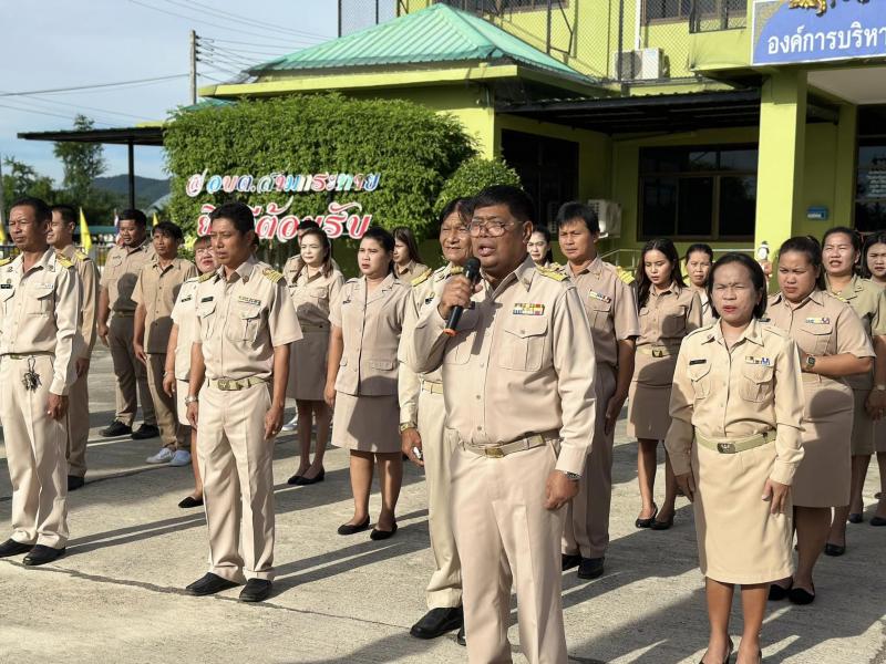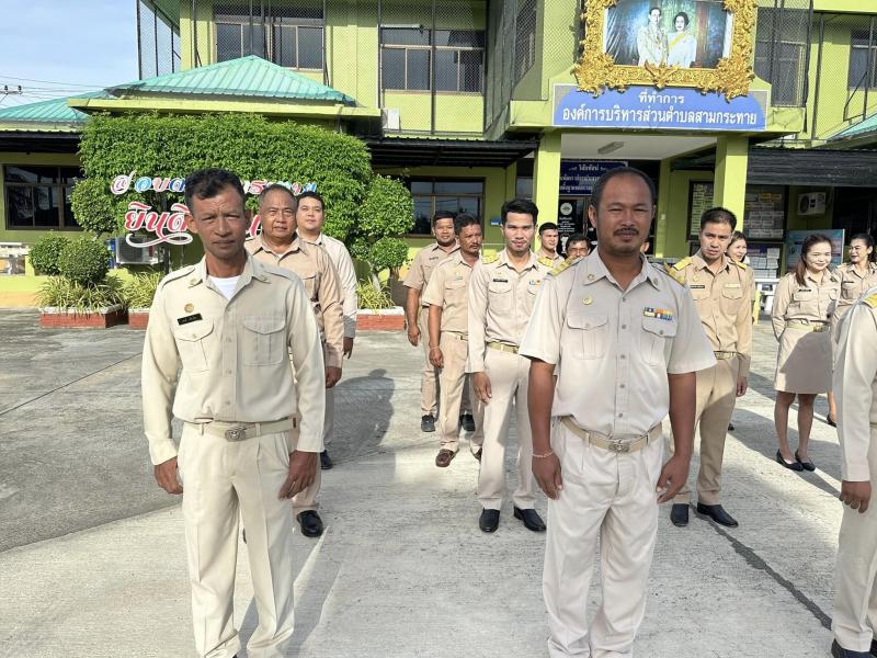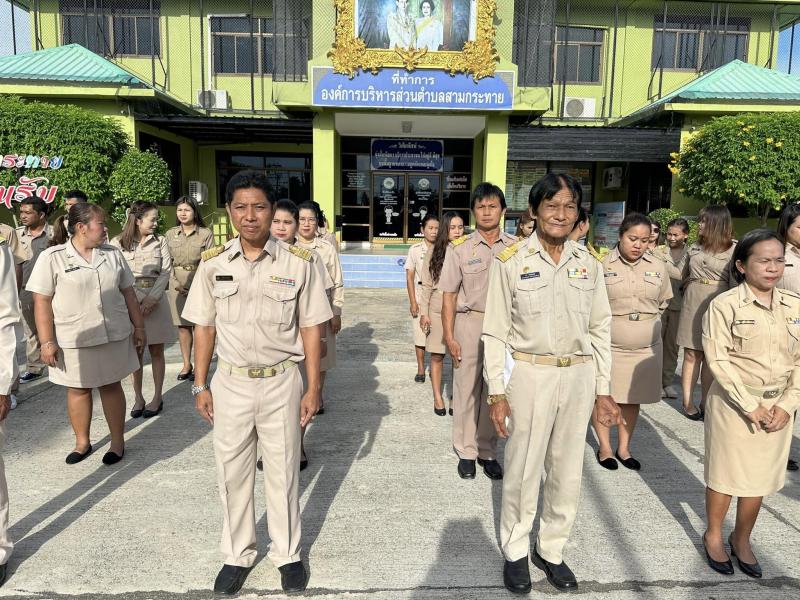 description เมื่อวันที่ 27 กันยายน 2567 เวลา 08.00 น. ผอ.สมควร คีรีนิล นายกอบต.สามกระทาย พร้อมด้วยรองนายก เลขานายก ปลัด ข้าราชการและเจ้าหน้าที่อบต.สามกระทาย เนื่องในโอกาสวันพระราชทานธงชาติไทย (Thai National Flag Day) 28 กันยายนของทุกปี โดยจัดกิจกรรมเคารพธงชาติและร้องเพลงชาติไทย เพื่อเป็นการสร้างความภาคภูมิใจของคนในชาติ และเป็นการน้อมรำลึกในพระมหากรุณาธิคุณพระบาทสมเด็จพระมงกุฏเกล้าเจ้าอยู่หัว ที่ทรงพระราชทานธงไตรรงค์เป็นธงชาติไทย ณ ลานหน้าองค์การบริหารส่วนตำบลสามกระทาย person admin