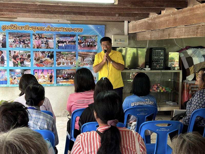 ผอ.สมควร คีรีนิล นายกอบต.สามกระทาย เป็นประธานกล่าวต้อนรับคณะดูงานวิสาหกิจชุมชนจากอำเภอแก่งกระจาน ณ ศูนย์ฝึกอาชีพชุมชนตำบลสามกระทาย และเยี่ยมชมการทำผลิตภัณฑ์กลุ่มแม่บ้านเกษตรกรบ้านเขาราง หมู่ 9 บ้านเขาราง ตำบลสามกระทาย อำเภอกุยบุรี จังหวัดประจวบคีรีขันธ์