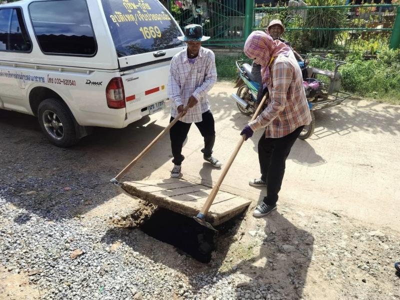 จัดทำแผงเหล็กฝาครอบท่อระบายน้ำ หมู่ 1 บ้านนาวัลเปรียง เพื่อซ่อมแซมฝาครอบของเดิมที่ผุพัง