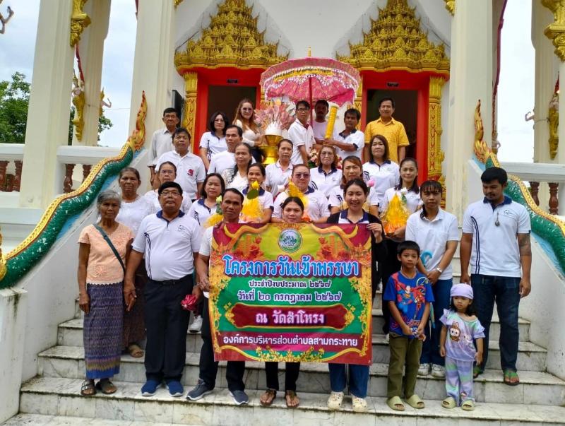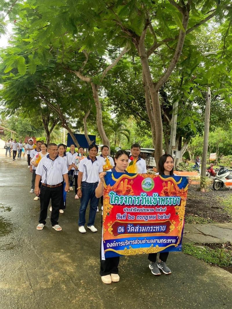 description อบต.สามกระทาย นำโดย ผอ.สมควร คีรีนิล นายกองค์การบริหารส่วนตำบลสามกระทาย ร่วมกับผู้บริหาร สมาชิกอบต. เจ้าหน้าที่ อบต.สามกระทาย คณะคุณครูศูนย์พัฒนาเด็กเล็กบ้านป่าถล่ม และคณะคุณครูศูนย์พัฒนาเด็กเล็กบ้านดอนกลาง จัดกิจกรรม หล่อเทียนพรรษา ร่วมฉลองเทียนพรรษา ฟังพระเจริญพระพุทธมนต์ ร่วมแห่เทียนพรรษา และถวายเทียนพร้อมจตุปัจจัย เพื่อทำบุญสืบสานประเพณีอันดีงาม ประจำปี 2567ณ วัดสามกระทาย วัดเขาลั่นทม และวัดสำโหรง person admin