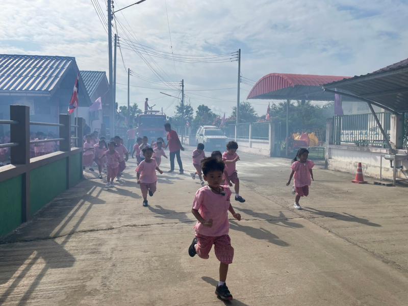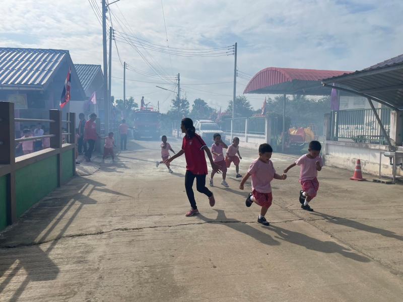 ซักซ้อมแผนอพยพหนีไฟ ให้แก่ครูและนักเรียนศูนย์พัฒนาเด็กเล็กบ้านป่าถล่ม