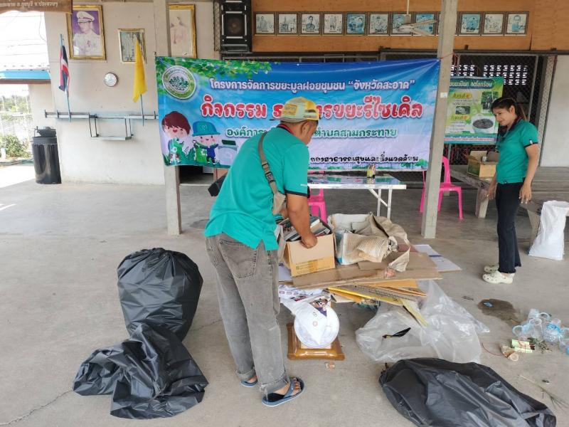 description ผอ.สมควร คีรีนิล นายกองค์การบริหารส่วนตำบลสามกระทาย มอบหมายให้เจ้าหน้าที่กองสาธารณสุขและสิ่งแวดล้อม ดำเนินการจัดซื้อขยะรีไซเคิล ณ หมู่ 5 บ้านสำโหรง ตามโครงการจัดการขยะมูลฝอยชุมชน "จังหวัดสะอาด"กิจกรรมธนาคารขยะ person admin
