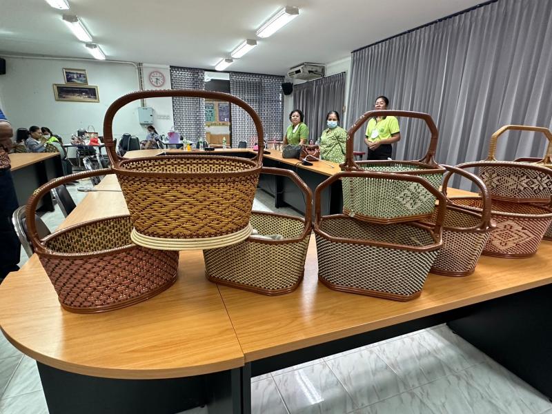 ตะกร้าหวายเทียมและไม้กวาดทางมะพร้าว ผลิตภัณฑ์จากกลุ่มแม่บ้านเกษตรกรบ้านเขาราง