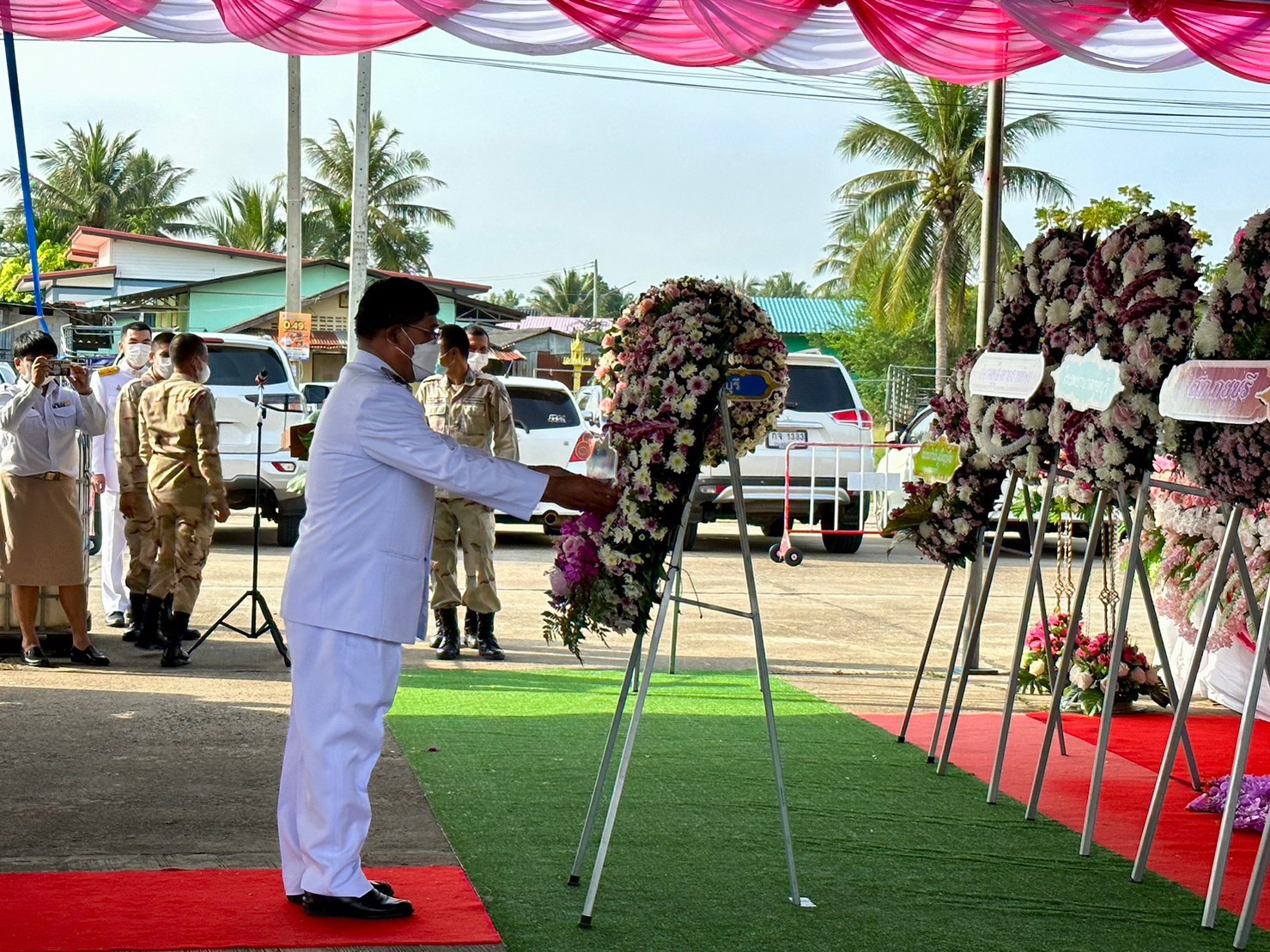 description วันที่ 23 ตุลาคม 2565 เวลา 08:00 น. นายมนตรี ลังกาพินธุ์ นายอำเภอกุยบุรี ร่วมกับ หน่วยงานราชการของอำเภอกุยบุรี พร้อมด้วย ผอ.สมควร คีรีนิล นายก อบต.สามกระทาย จัดพิธีน้อมรำลึกและพิธีวางพวงมาลาถวายราชสักการะ เนื่องในวันคล้ายวันสวรรคตของพระบาทสมเด็จพระจุลจอมเกล้าเจ้าอยู่หัว 23 ตุลาคม 2565 เพื่อแสดงความจงรักภักดี และกตัญญูกตเวทีในพระมหากรุณาธิคุณ ณ บริเวณลานหน้าองค์การบริหารส่วนตำบลสามกระทาย person admin