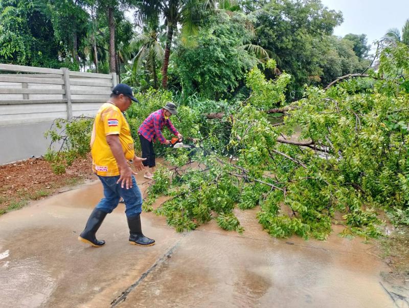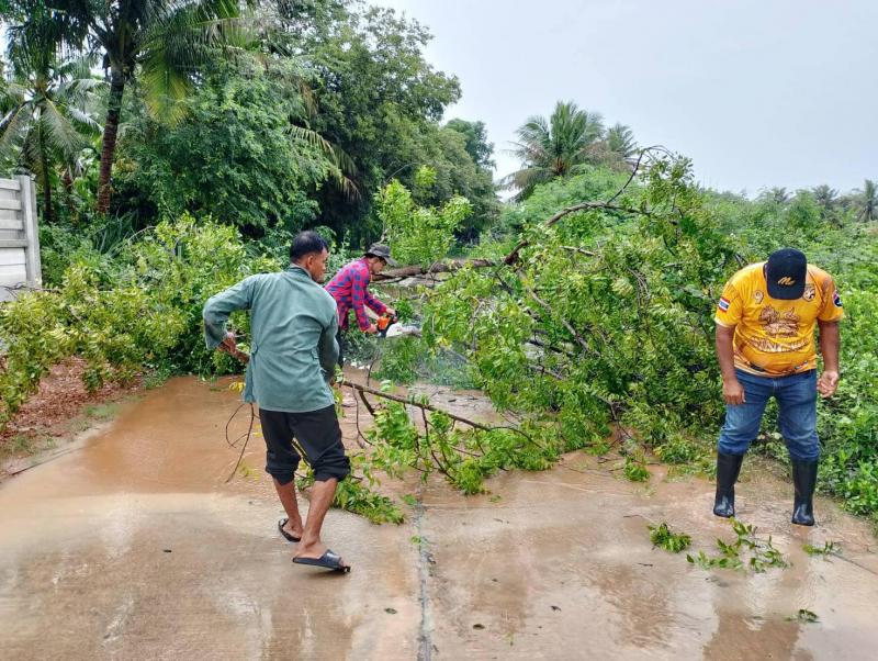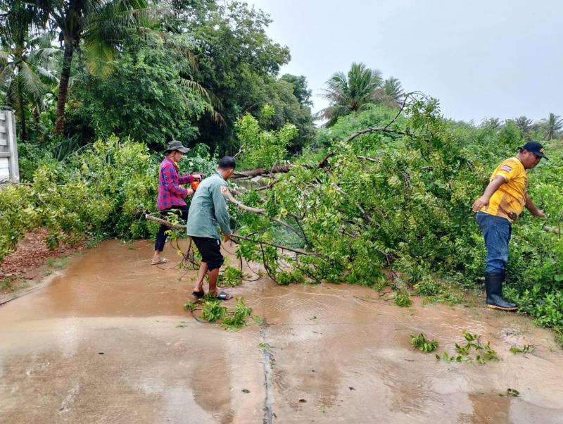 ตรวจสอบพื้นที่น้ำท่วม หมู่ที่ 5 บ้านสำโหรง และตัดต้นไม้ที่ล้มขวางทางจราจร หมู่ที่ 2 บ้านสามกระทาย