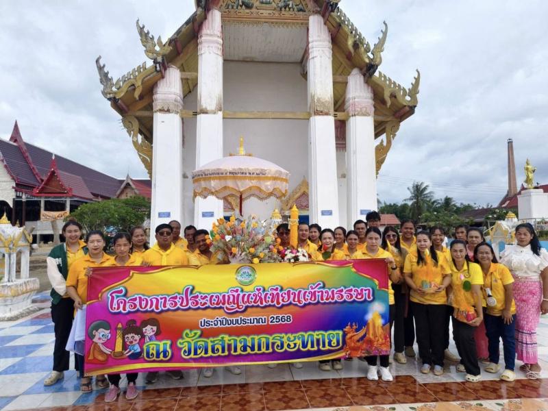 ร่วมพิธีฉลองเทียนพรรษา ฟังพระเจริญพระพุทธมนต์ และร่วมประเพณีแห่เทียนเข้าพรรษา ประจำปี 2568 ณ วัดในเขตพื้นที่ตำบลสามกระทาย