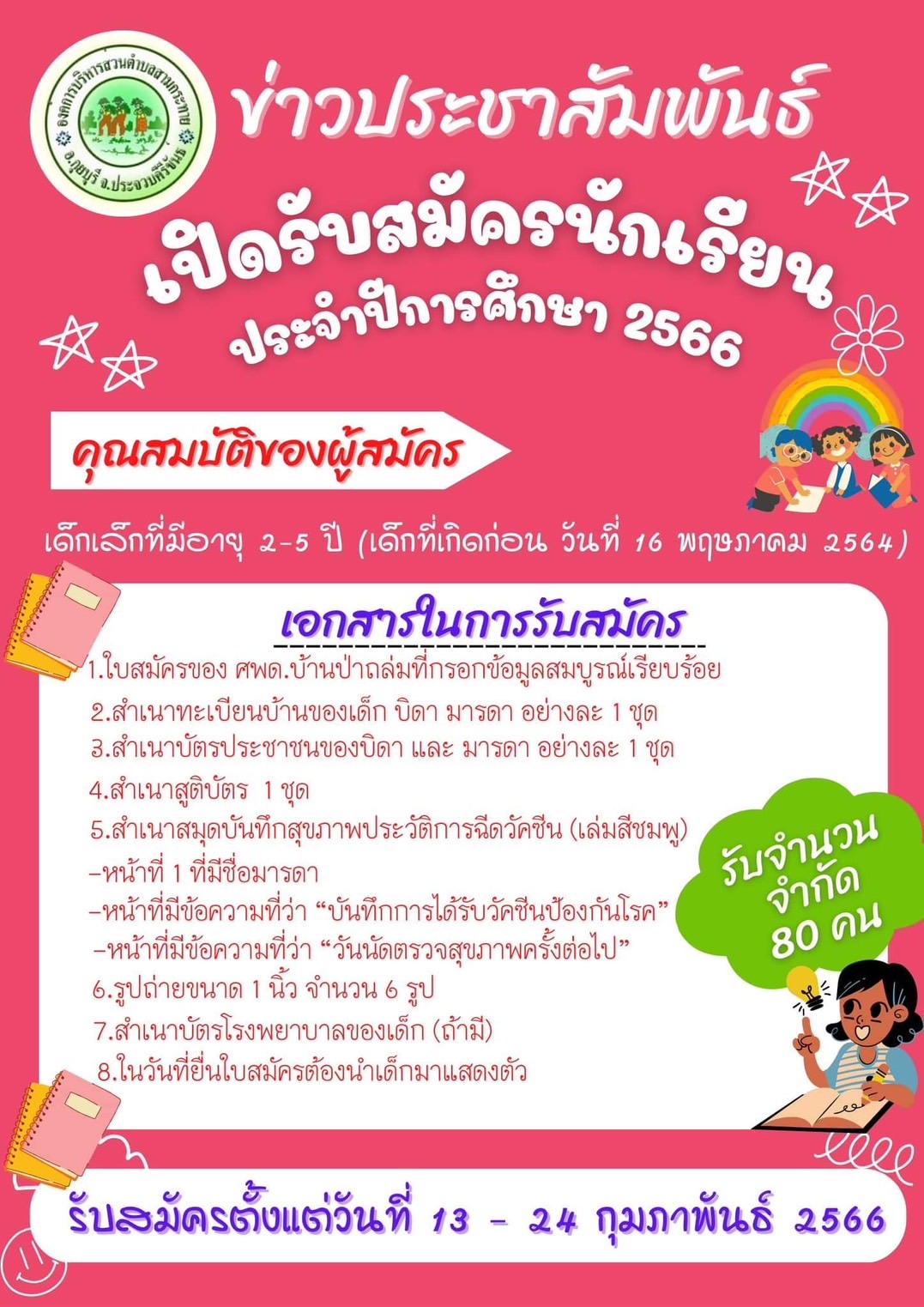 ข่าวประชาสัมพันธ์ เปิดรับสมัครนักเรียน ประจำปีการศึกษา 2566