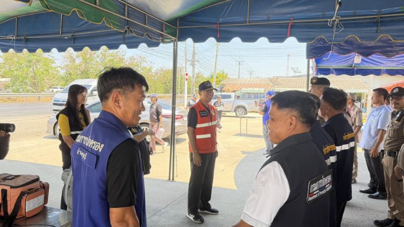 description วันที่ 12 เมษายน 2569 เวลา 13.30 น. นางสาววราพร ตั้งธรรม นายกอบต.สามกระทาย พร้อมรองนายก เลขานุการนายก ผู้ใหญ่บ้าน ผอ.รพ.สต.บ้านดอนกลางและบ้านป่าถล่ม อปพร. และสถานีตำรวจภูธรสามกระทาย ร่วมต้อนรับ ท่านพันจ่าเอกพัณณ์ภัลส์ สิทธิศักดิ์ ท่านอภิญญา เอี่ยมอำพา รองผู้ว่าราชการจังหวัดประจวบคีรีขันธ์ พร้อมคณะทำงาน หัวหน้าส่วนราชการประจำจังหวัด เจ้าหน้าที่ หน่วยงานที่เกี่ยวข้อง ลงพื้นที่ตรวจเยี่ยมจุดตรวจ/จุดบริการประชาชนช่วงเทศกาลสงกรานต์ ประจำปี 2569 บริเวณหน้าองค์การบริหารส่วนตำบลสามกระทาย เพื่ออำนวยความสะดวกและดูแลความปลอดภัยให้กับประชาชนและนักท่องเที่ยวในช่วงวันหยุดยาว ซึ่งในการตั้งจุดบริการให้จุดพักรถในครั้งนี้ รณรงค์ขับขี่ปลอดภัย และเฝ้าระวังอุบัติเหตุทางถนนตลอด 24 ชั่วโมง person admin